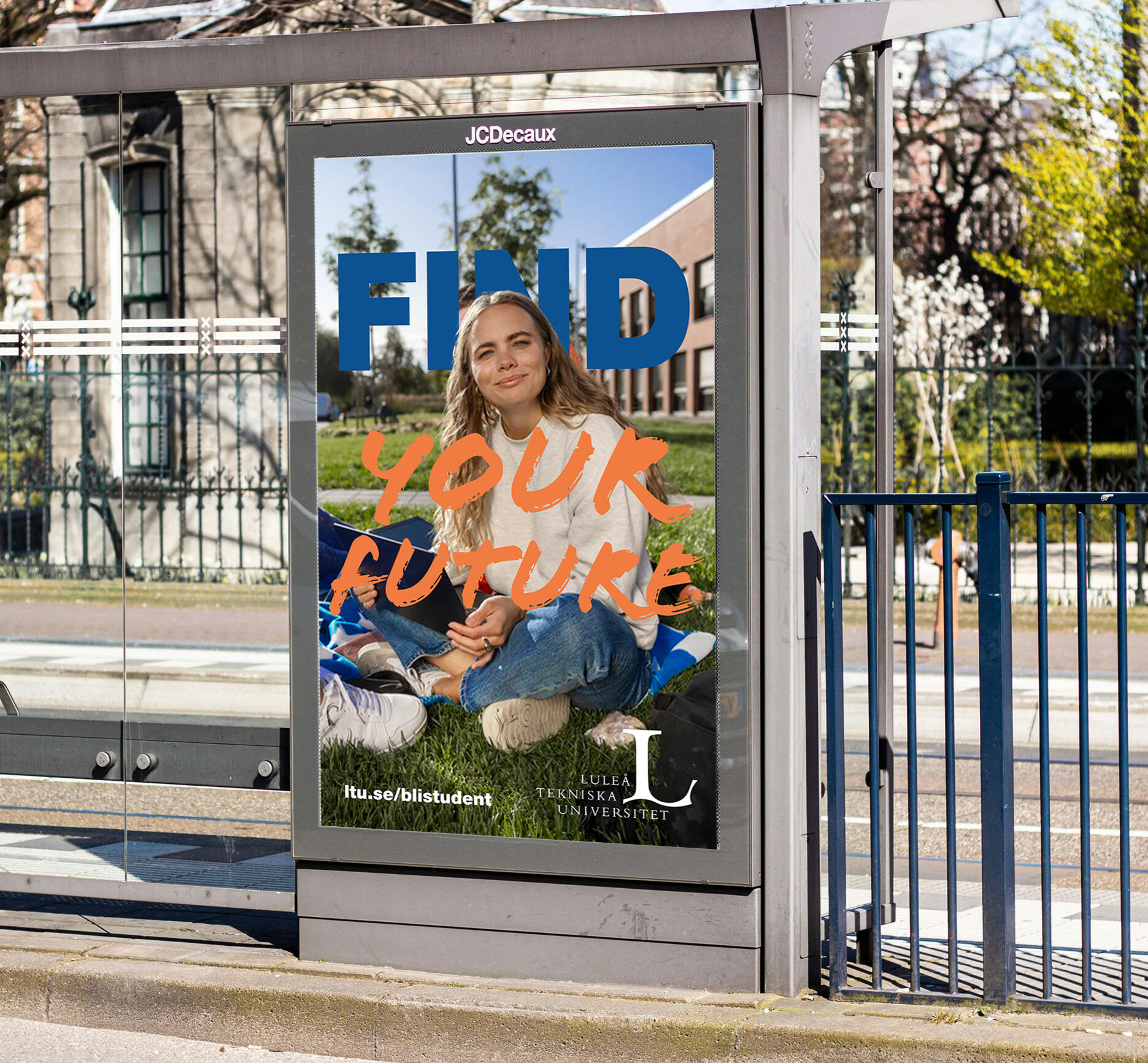 An assignment for a rebrand consept for Luleå tekniska universitet.My angle was to put the student in focus and create a more personal experience. With dynamic typography and shapes I wanted to highligt the individuals journey and the univeritys more creative programs that usually gets overshadowed by the technical programs.