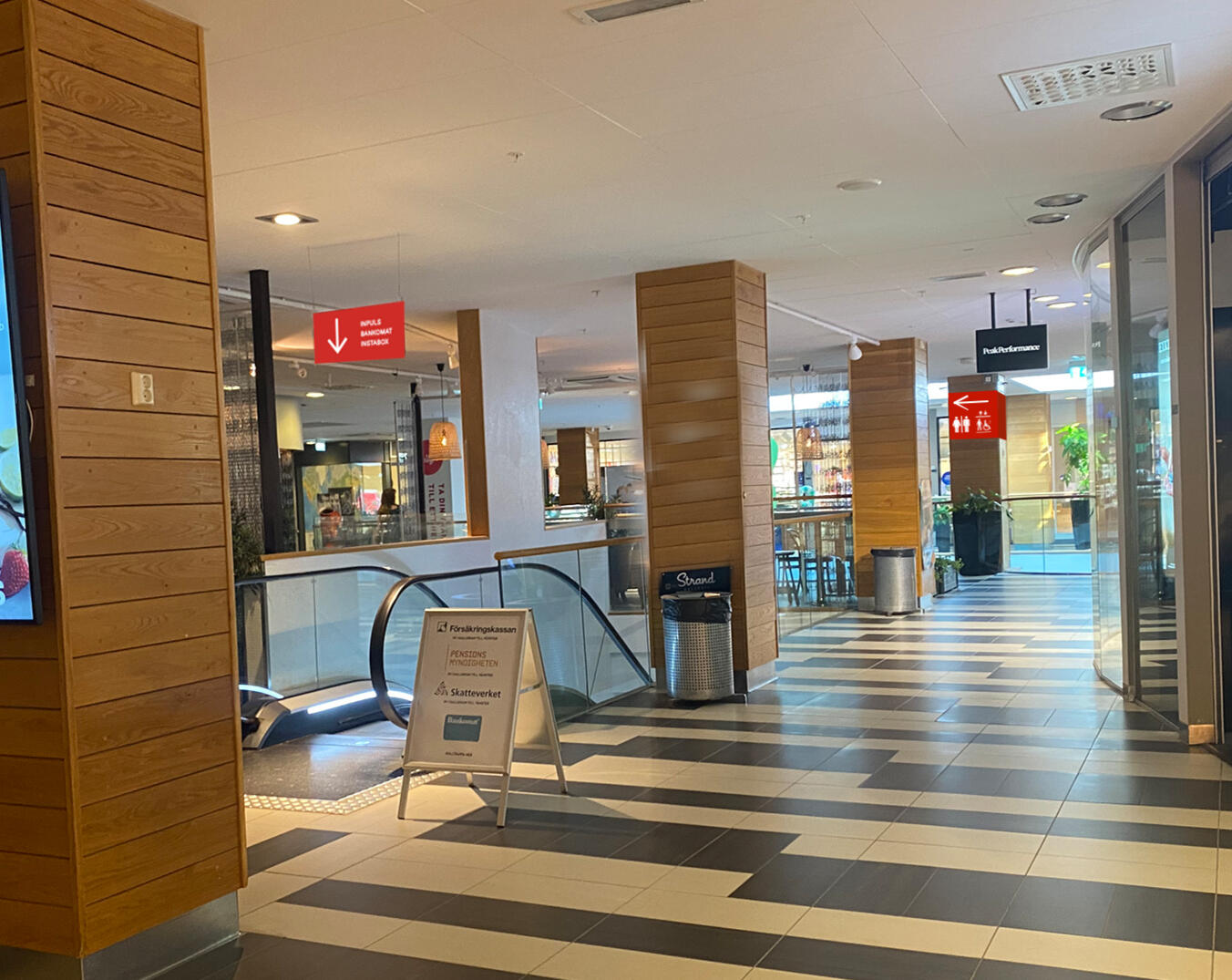 The assignment was to design a new wayshowing concept for a shopingmall. Starnd Galleria is a relatively small shoppingcenter that lacks unity and guidance.I wanted to give the shoppingcenterl a strong visual unity and clear guidance for the centers many services. I worked with the shoppingmalls graphic profile to develop new signs and informationboards that stand out in the shoppingcenter.